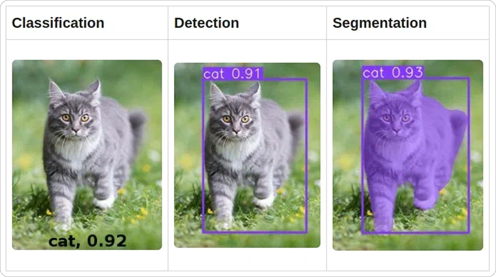 - CV (Computer Vision) — работа с изображениями и видео. Классические задачи здесь — классификация, детекция объектов, сегментация, восстановление или улучшение изображений;